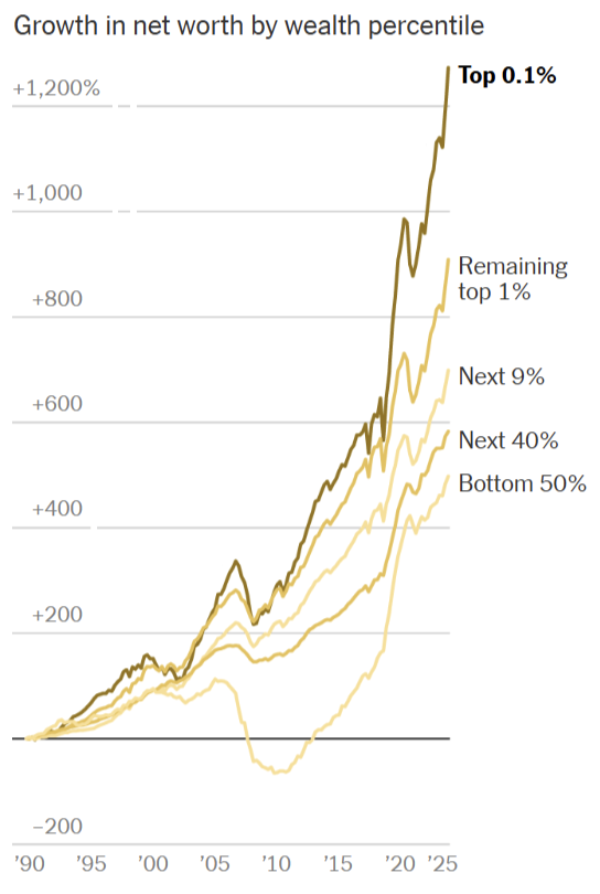 Nearly every household – including the bottom half – has made wealth gains of at least 500% since 1990. America is still a wealth creation machine.