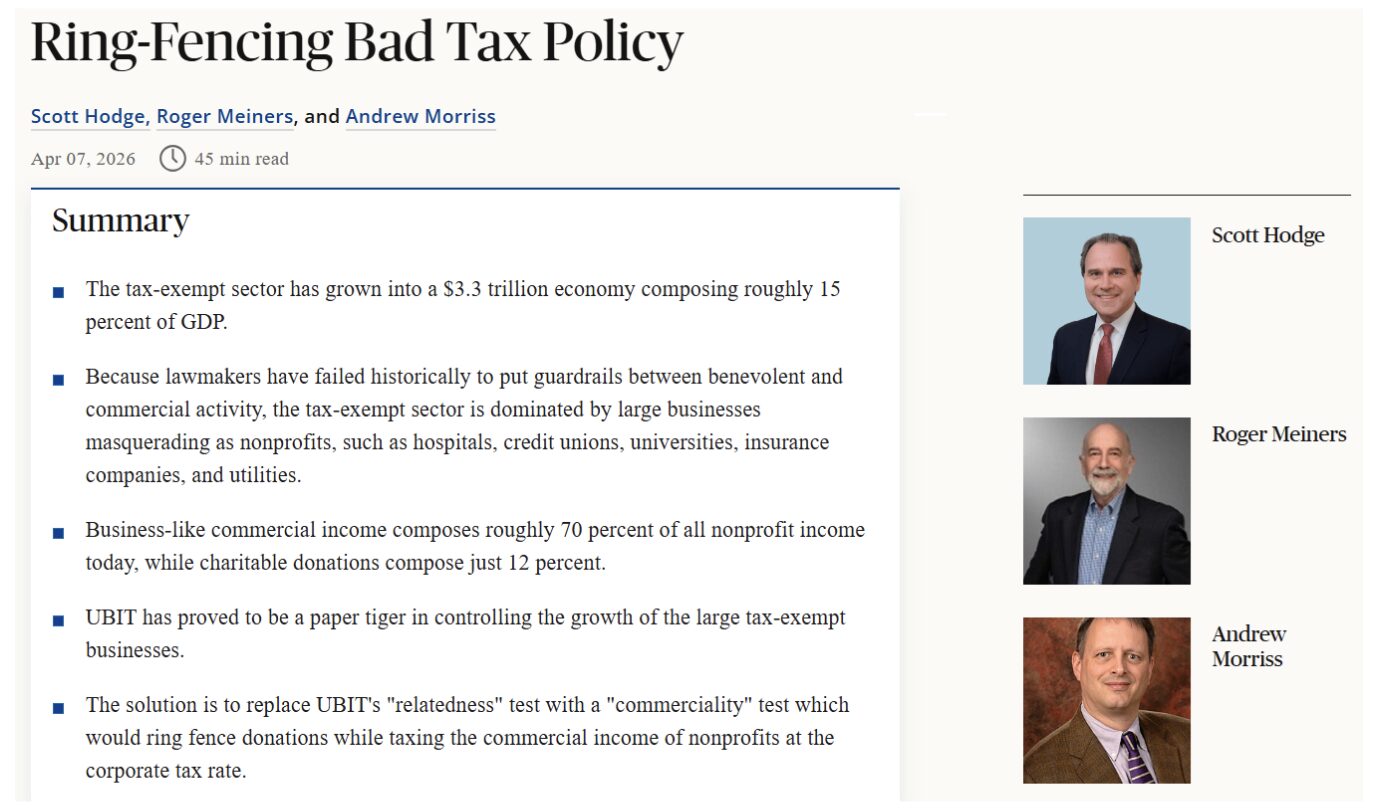 Unleash Prosperity is a non-profit, so this is an admission against our own interests, but non-profit tax status is one of the largest and most destructive distortions still in the federal tax code.